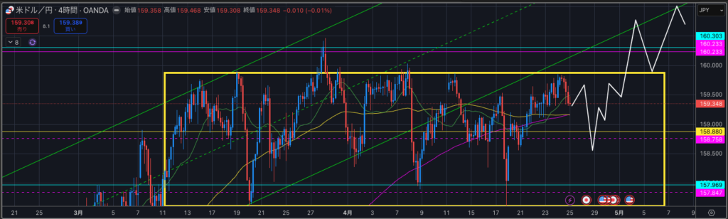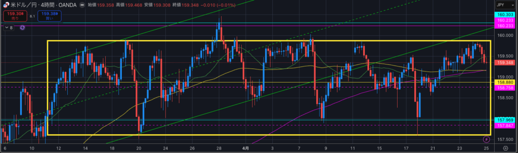 これまでちょくちょく口先介入してきましたが、160円前後を推移するのが継続すると、迂闊にロングエントリーしづらいのもあります。