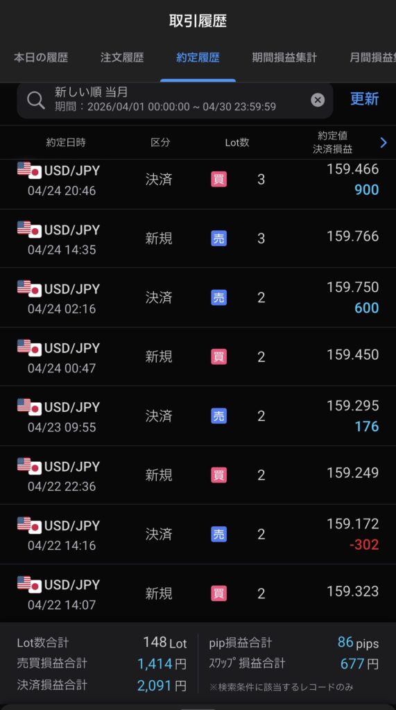 しかし、途中で無理したトレードもあったので、無闇な飛びつきのエントリーは反省です。
